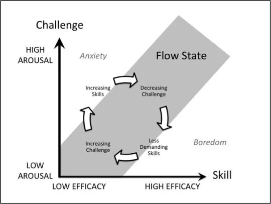 From easy to hard difficulty level, players constantly practice their skills and confront higher challenges, so that follow Csikszentmihalyi’s Flow and stay in the flow state.
