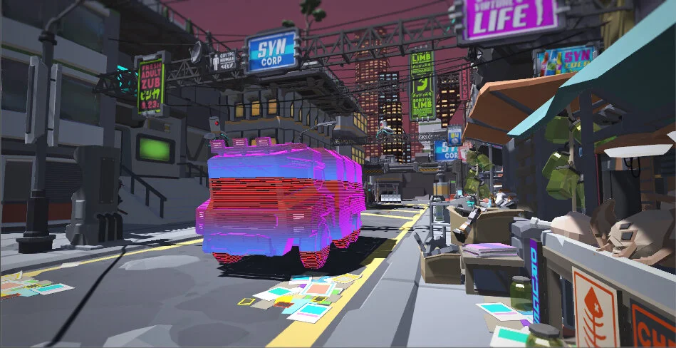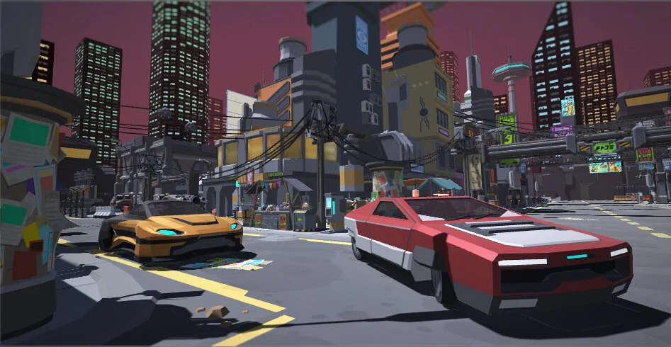 The game is set in a Sci-fi Cyberpunck style city that is currently holding a “Racing Competition”. Of course, now all the vehicles are all driverless and controlled by computer.